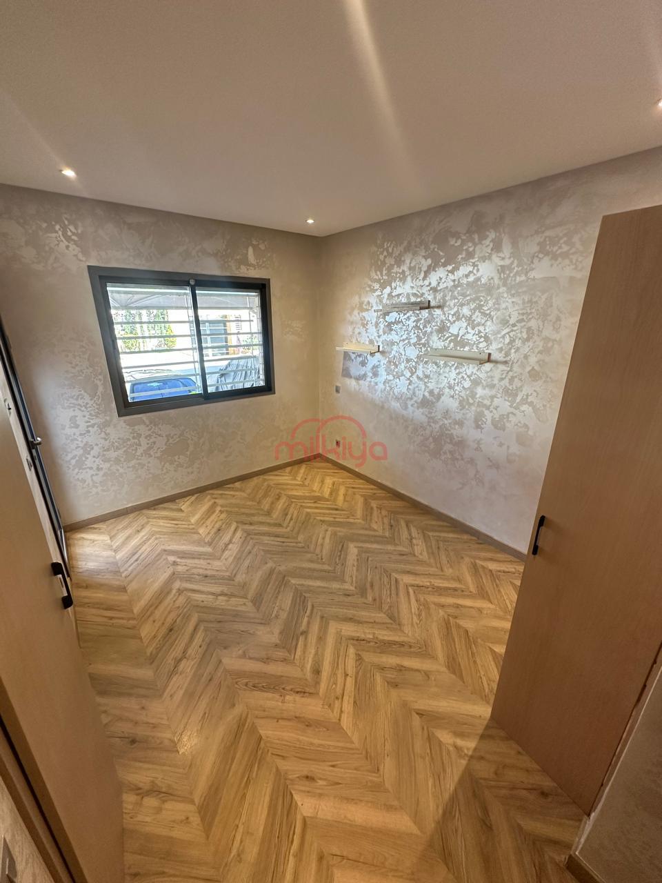 Je mets en location un joli appartement non meublé, situé au rez-de-chaussée d’une résidence fermée et bien aménagée au quartier Almaz, Casablanca.