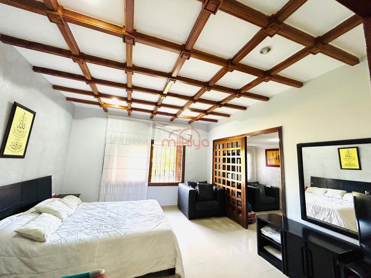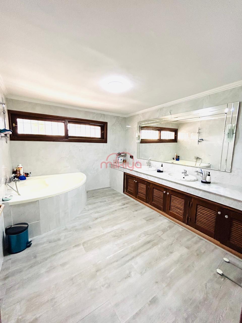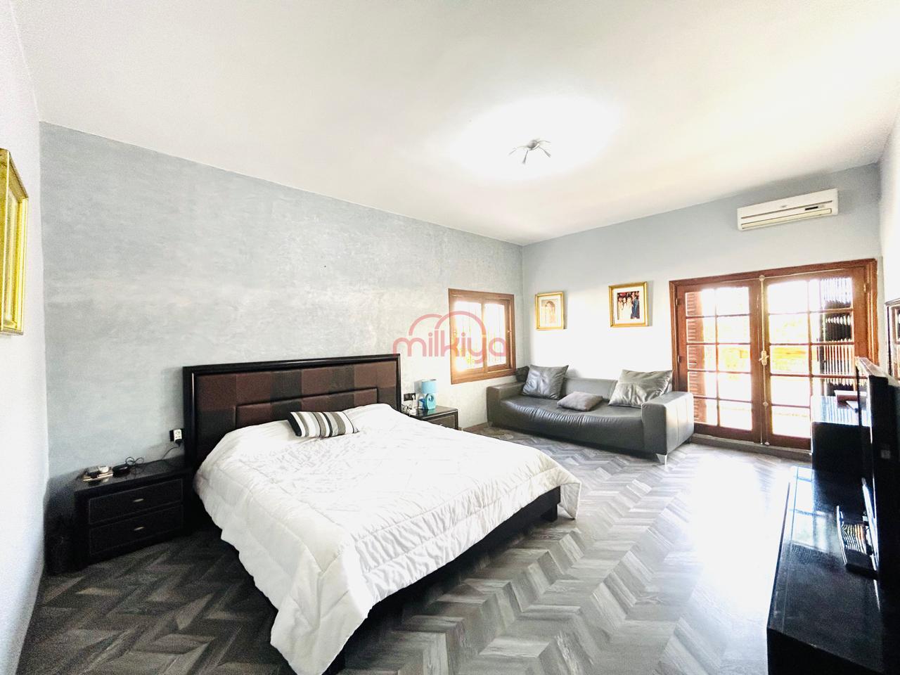 Au rez-de-chaussée, vous serez accueillis par un vaste espace ouvert comprenant un coin cheminée, une salle à manger, et un salon marocain. Vous y trouverez également une chambre de personnel, une très grande cuisine , ainsi qu’un loft avec une chambre à coucher, un dressing, une douche et des salles de bain.