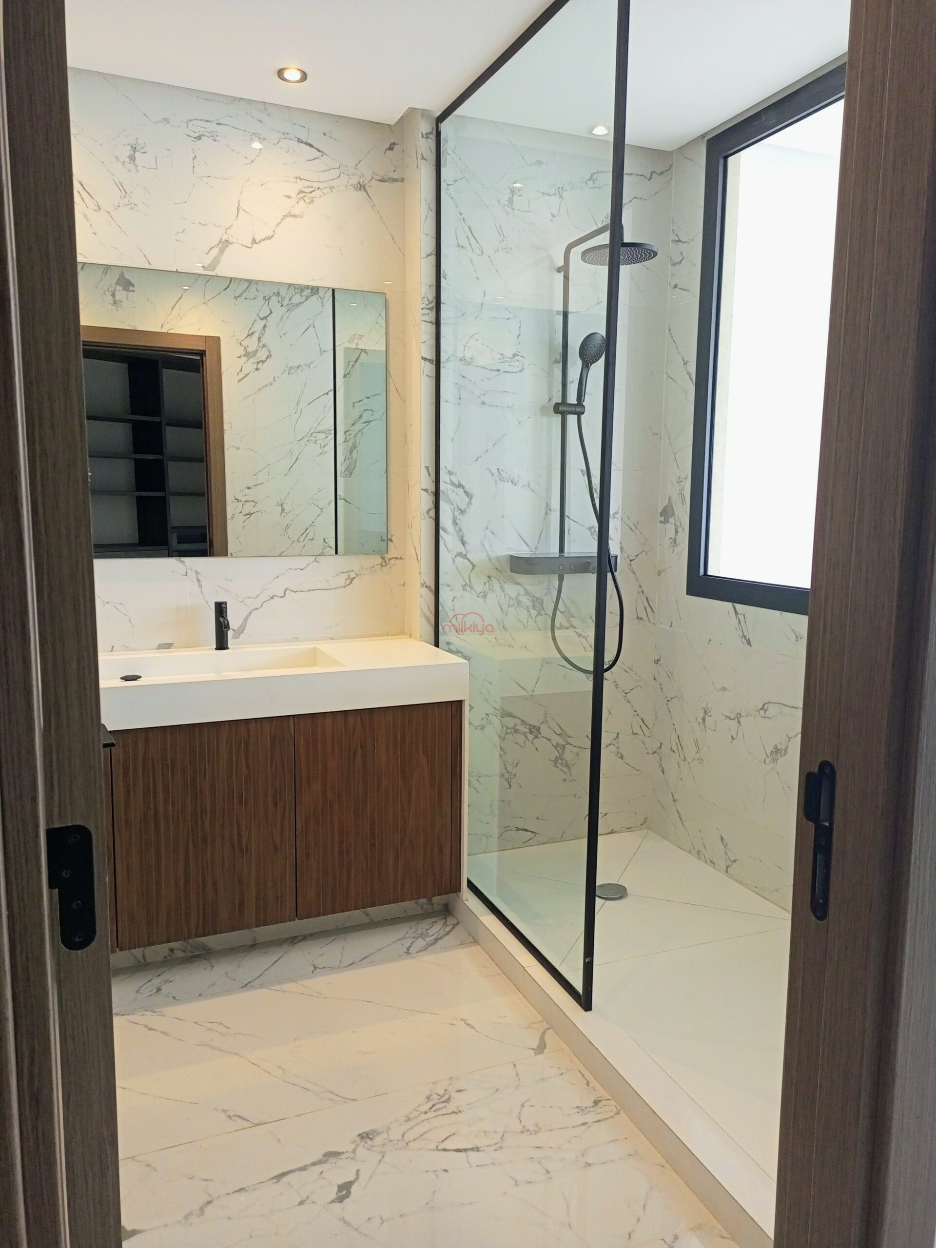 – 3 chambres à coucher dont une master room avec dressing et salle de bain et deux chambres avec une salle de bain commune et une grande terrasse