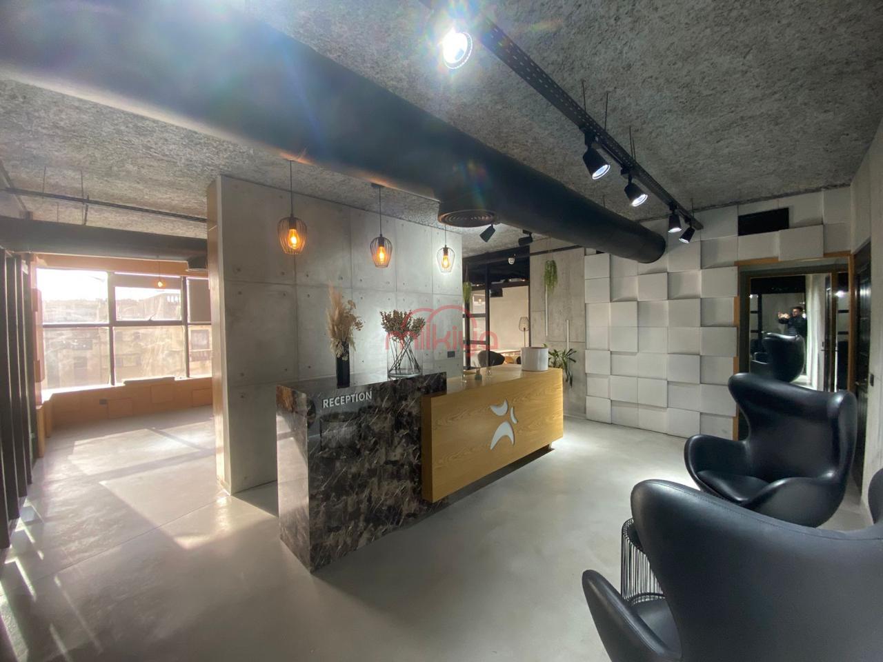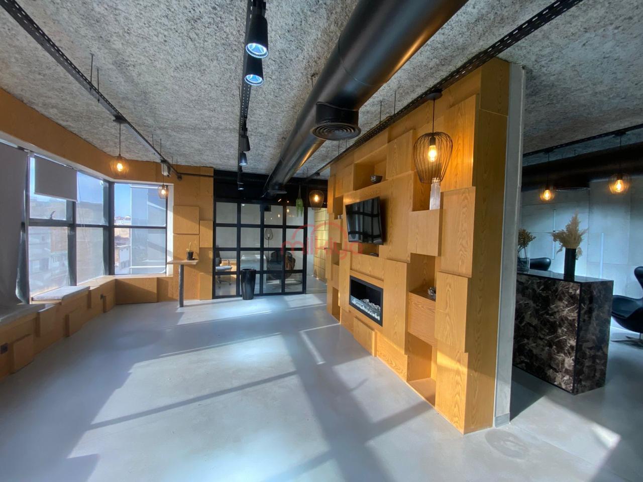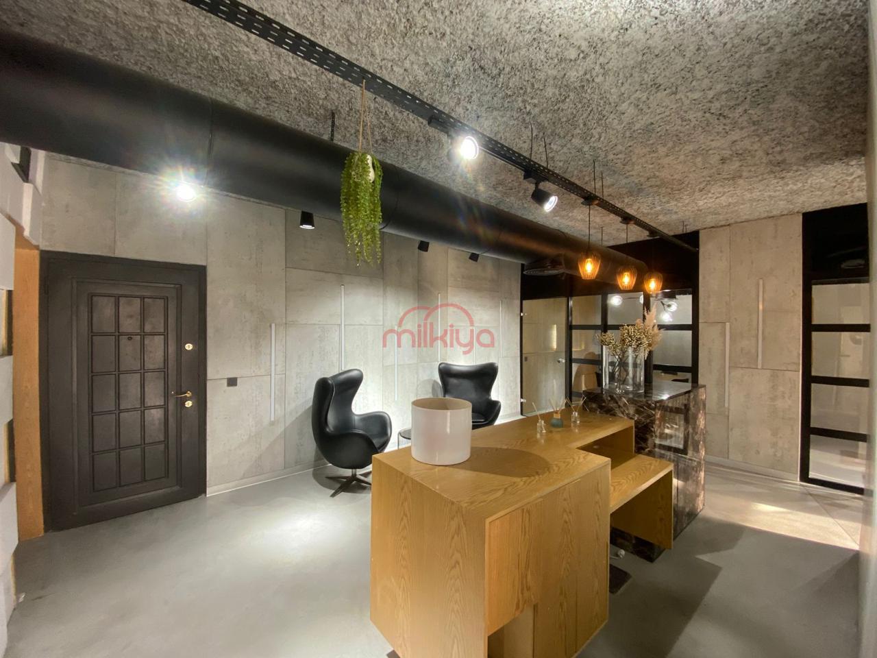 Décoré par un architecte d’intérieur et bien équipé (caméras de sécurité, TV, climatisation), il dispose d’un open space, de trois bureaux indépendants, d’une réception, de toilettes et kitchenette, ainsi que d’une place de parking.