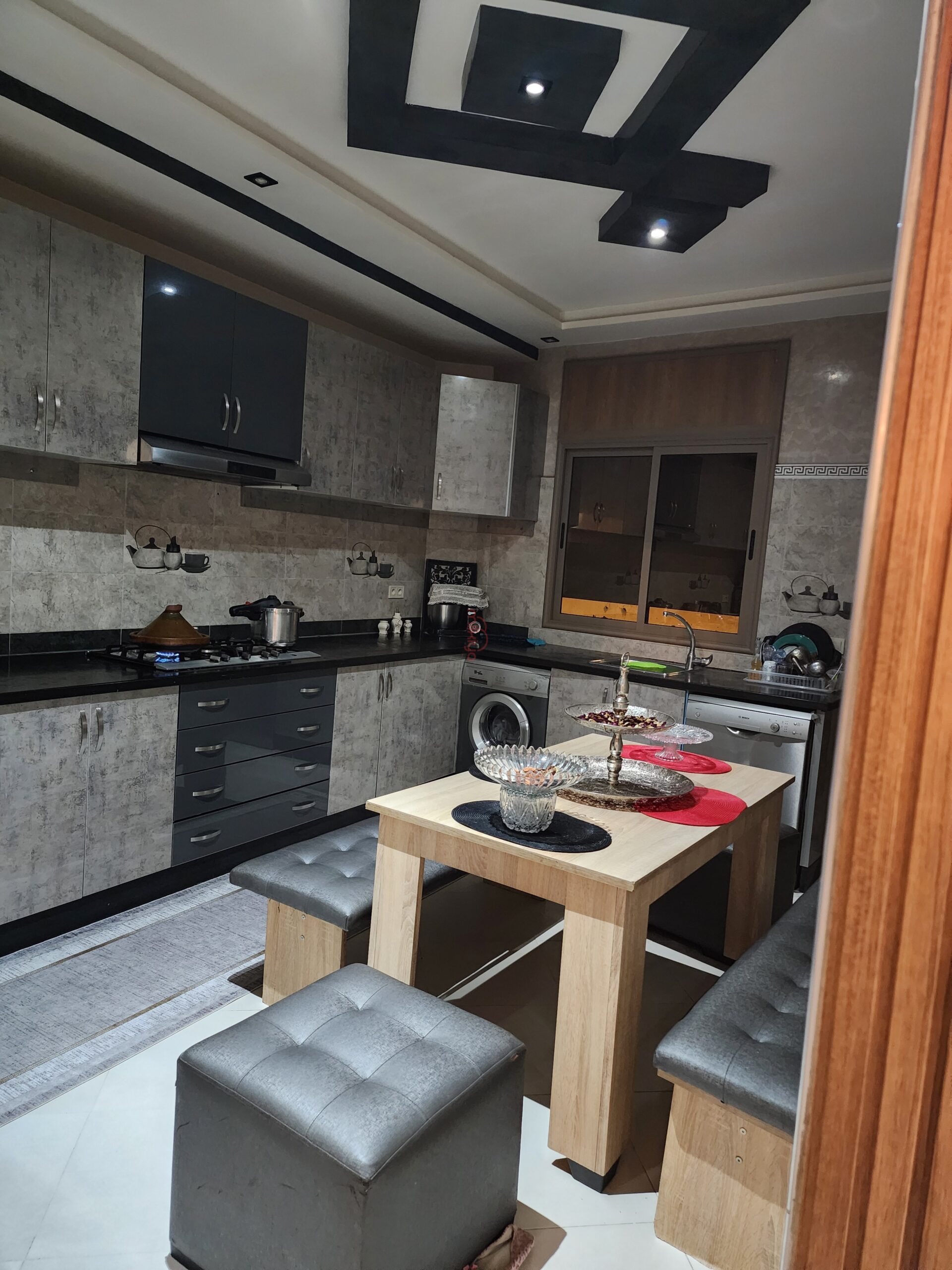 Je mets en vente un appartement de 145 m², situé au 1er étage d’une maison R+2, à Hay Zitoune, Marrakech.