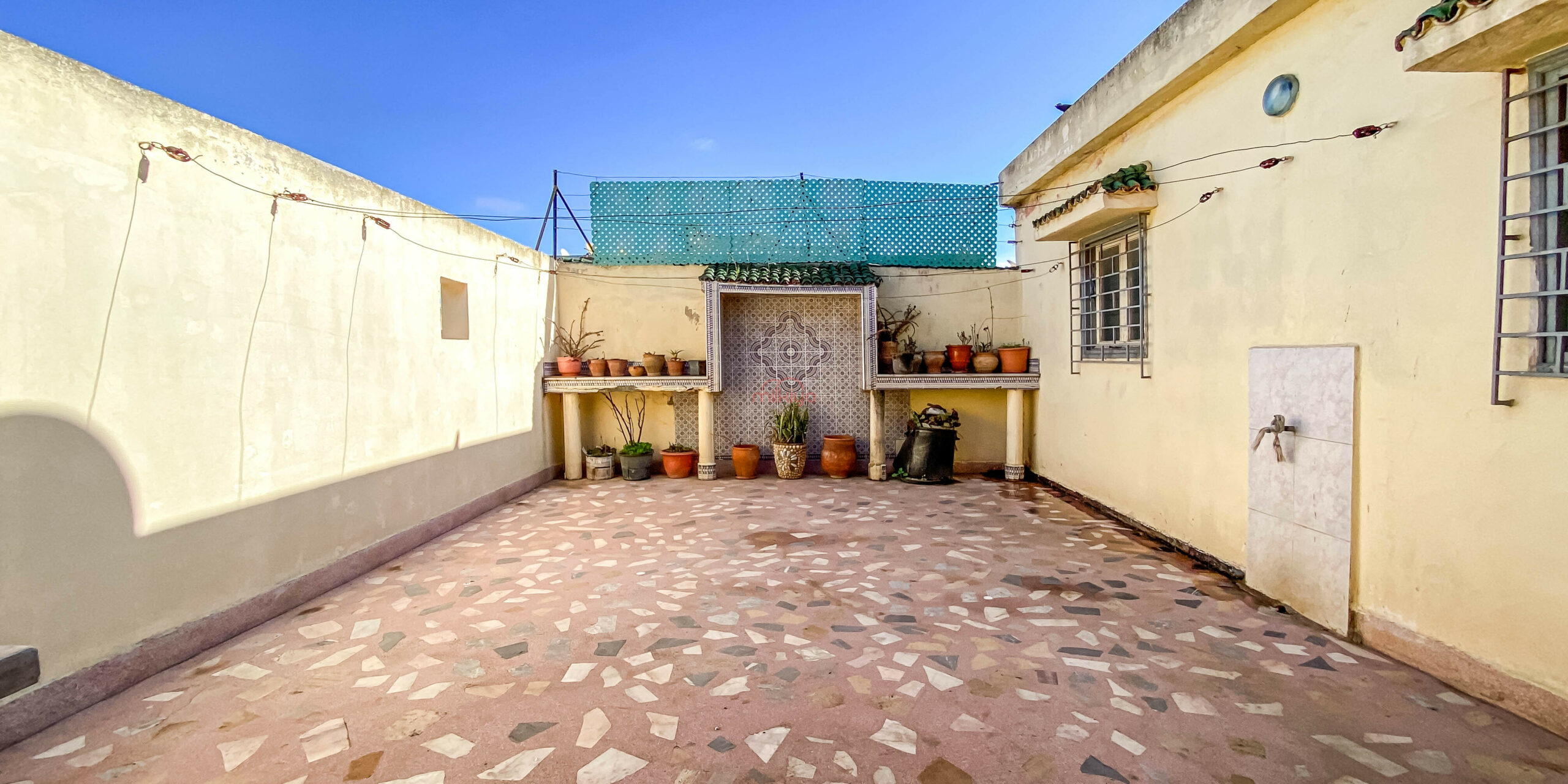 Terrasse : Partiellement aménagée, elle offre un espace ouvert ainsi qu’un appartement supplémentaire (salon, chambre et cuisine).