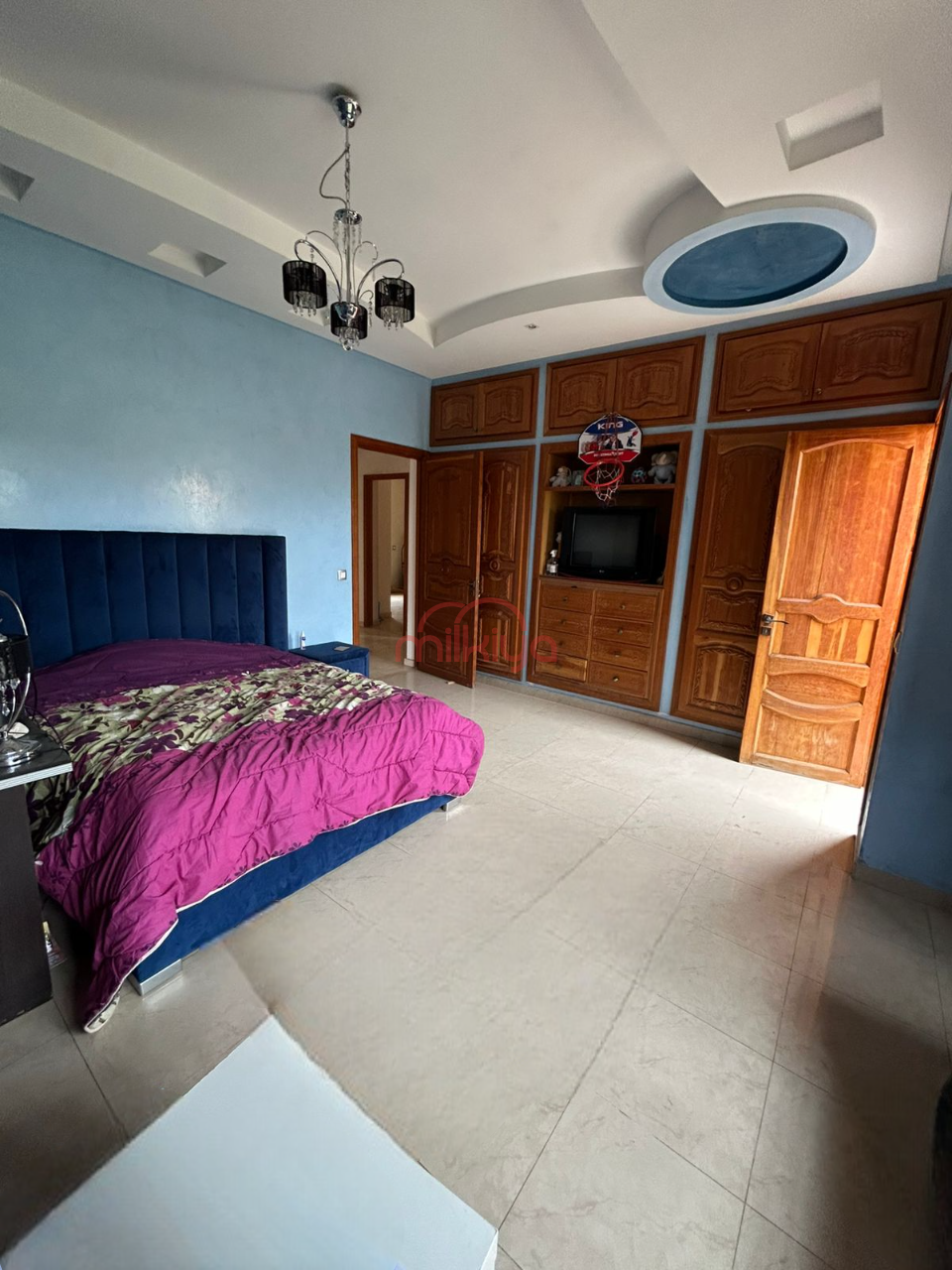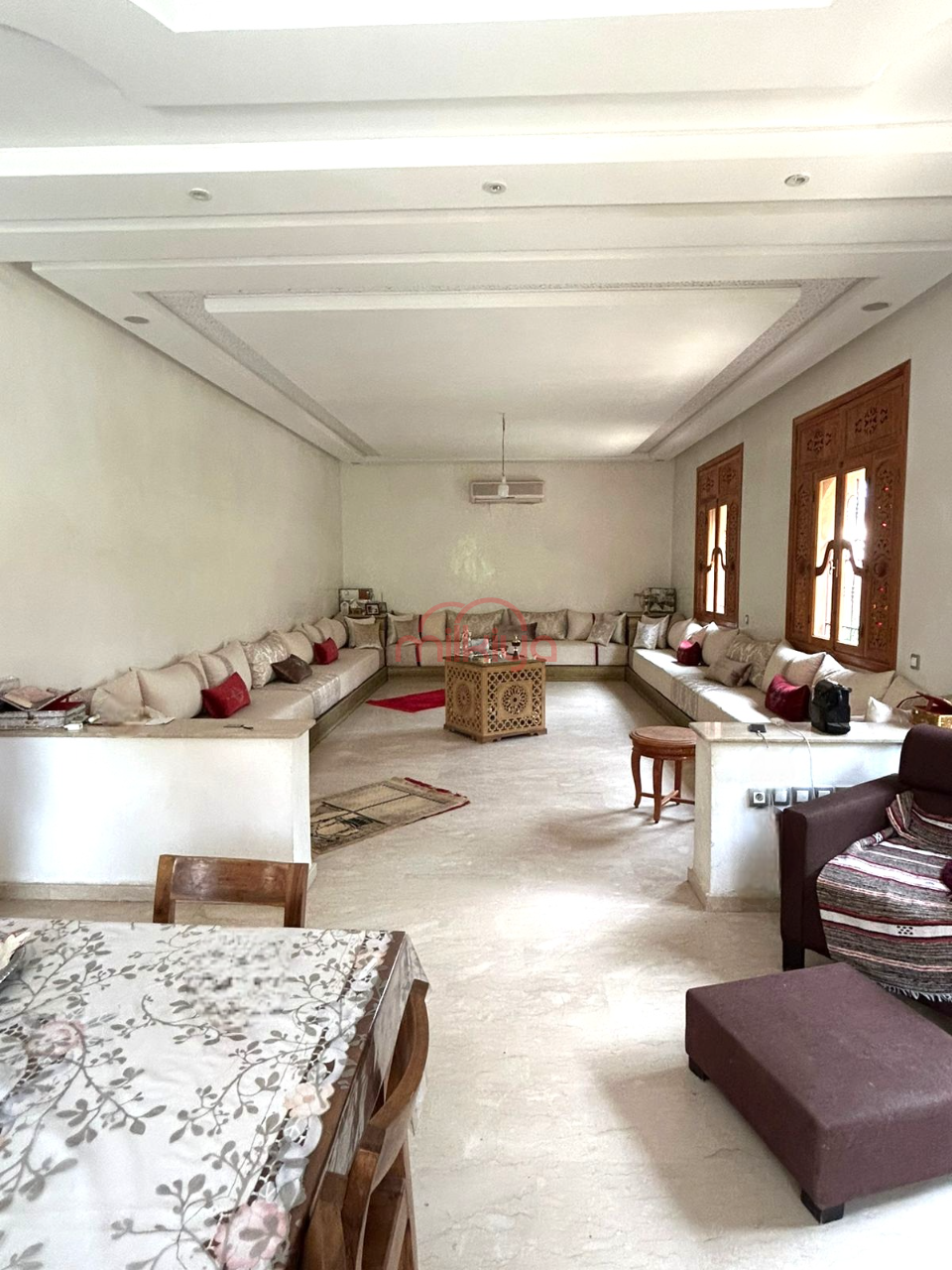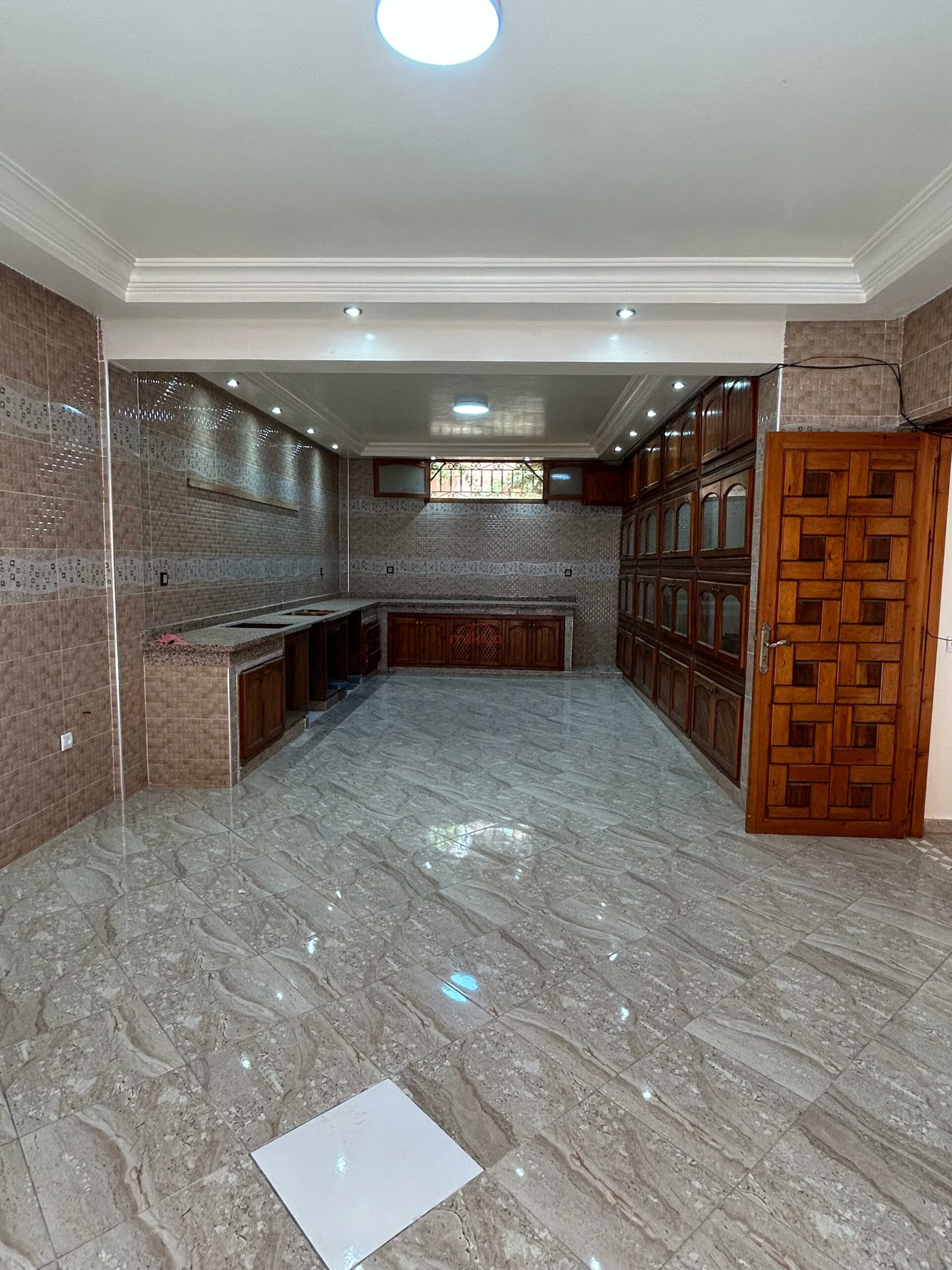 En cave (180 m²), vous trouverez une grande cuisine, un salon marocain, deux chambres avec placards, une petite chambre et une salle de bain avec toilettes.